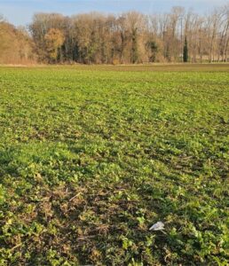 Niet van de monitoring in het winterhalfjaar maar van afgelopen herfst een mooi voorbeeld van een kruidenrijke akker met nabloei op de stoppel. Hier zal ook in de winter nog voedsel en dekking aanwezig zijn.