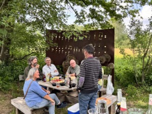Op uitnodiging van Natuurrijk Limburg gingen zo’n 20 deelnemers mee op veldbijeenkomst onder leiding van veldmedewerkers Koen, Pieter en Mickeal. Tijdens deze leerzame excursie bezochten we diverse percelen grasland waar ruimte is voor natuurontwikkeling via extensief beheer. De deelnemers stelden volop vragen over de soortenrijkdom van de vegetatie, het maaibeheer en de uitdagingen waar graslandbeheerders in de praktijk tegenaan lopen zoals op deze locatie de snelle opmars van pitrus in de graslanden – een taaie plant die zelfs door koeien en schapen wordt gemeden.