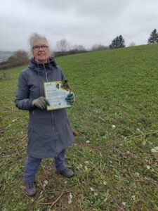 Geco Visscher is namens de Steenuilenwerkgroep Limburg en Kerkuilenwerkgroep Limburg (beiden werkgroepen van Vogelwacht Limburg) de coördinator en ons aanspreekpunt voor de actie van STONE. Aan de trotse eigenaresse van het perceel in Wahlwiller overhandigde hij een gedenkbordje, waarop de actie van STONE beschreven is.